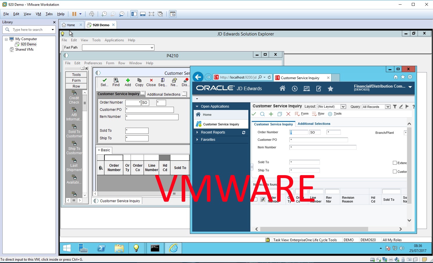 The 9.20 Demo is based on an Oracle 12C server (this was supplied with the JDE Standalone demo) installed on an evaluation copy of Windows 2012 R2. (180 day expiry) The VM can be supplied in either Microsoft Hyper-V format (vhd) or VMWare (vmdk). Each disk file expands to around 37Gb from a 13.5Gb zip file. (and from this you can extend volumes as you see fit) Please note - only the harddisk file is supplied - you will need to know how to import this harddisk into your working environment. This is quite straight forward in Hyper-V but requires more knowledge in VMWare. (in a nutshell, you basically have to create a new VM yourself, then edit and remove the harddisk - then add the supplied vmdk file to it as an existing harddisk)